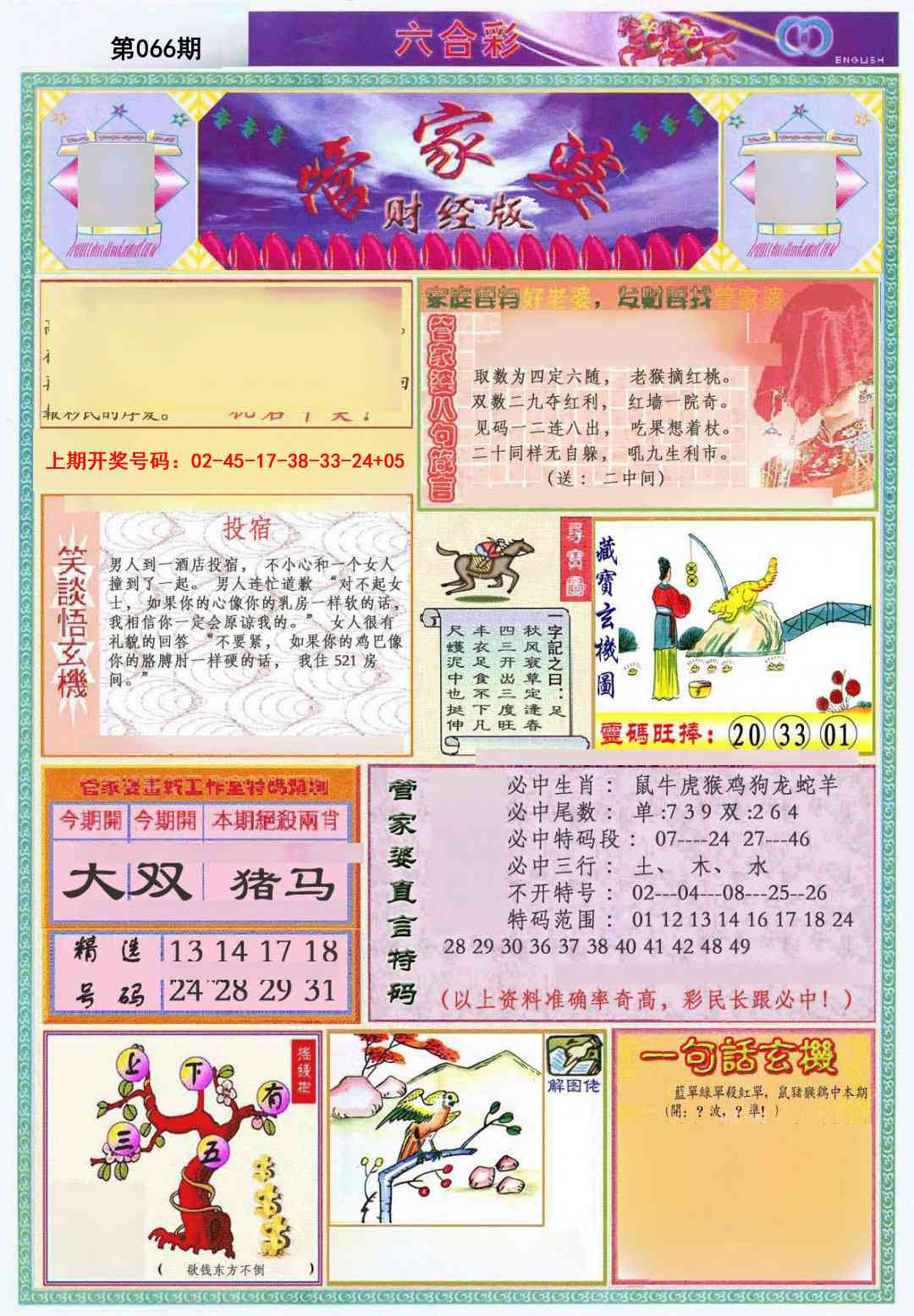 | 066期:〖六合之家〗绝杀一尾全年无错 |